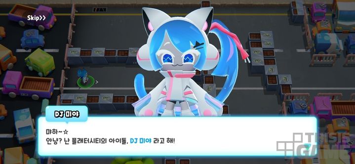 여기에서 또 중요하게 등장하는 캐릭터 중 하나가 'DJ 미야'죠. 테스트 플레이 기준 플레이어블 캐릭터는 아니었지만, 이 게임과 도시의 마스코트에 가까운 캐릭터였습니다.