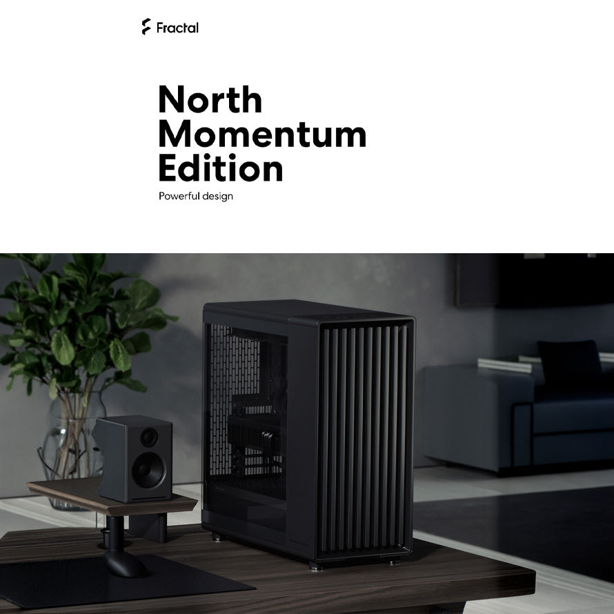 '노스 모멘텀 에디션 블랙' 모델은 케이스 전면에 실제 호두나무 원목을 패널로 가공하여 적용했다. 외부 입출력 포트와 버튼 등의 요소에는 황동 재질의 부품을 사용해 마감했으며 상단 패널 후면에는 가죽 소재의 탭을 부착해 시스템 조립 및 유지 보수 시 패널 탈부착의 편의성을 높였다. 측면에는 타공망 형태의 메시 패널을 채택해 외부의 찬 공기가 시스템 내부로 직접 유입될 수 있는 공기 흐름 구조를 갖추고 있다.