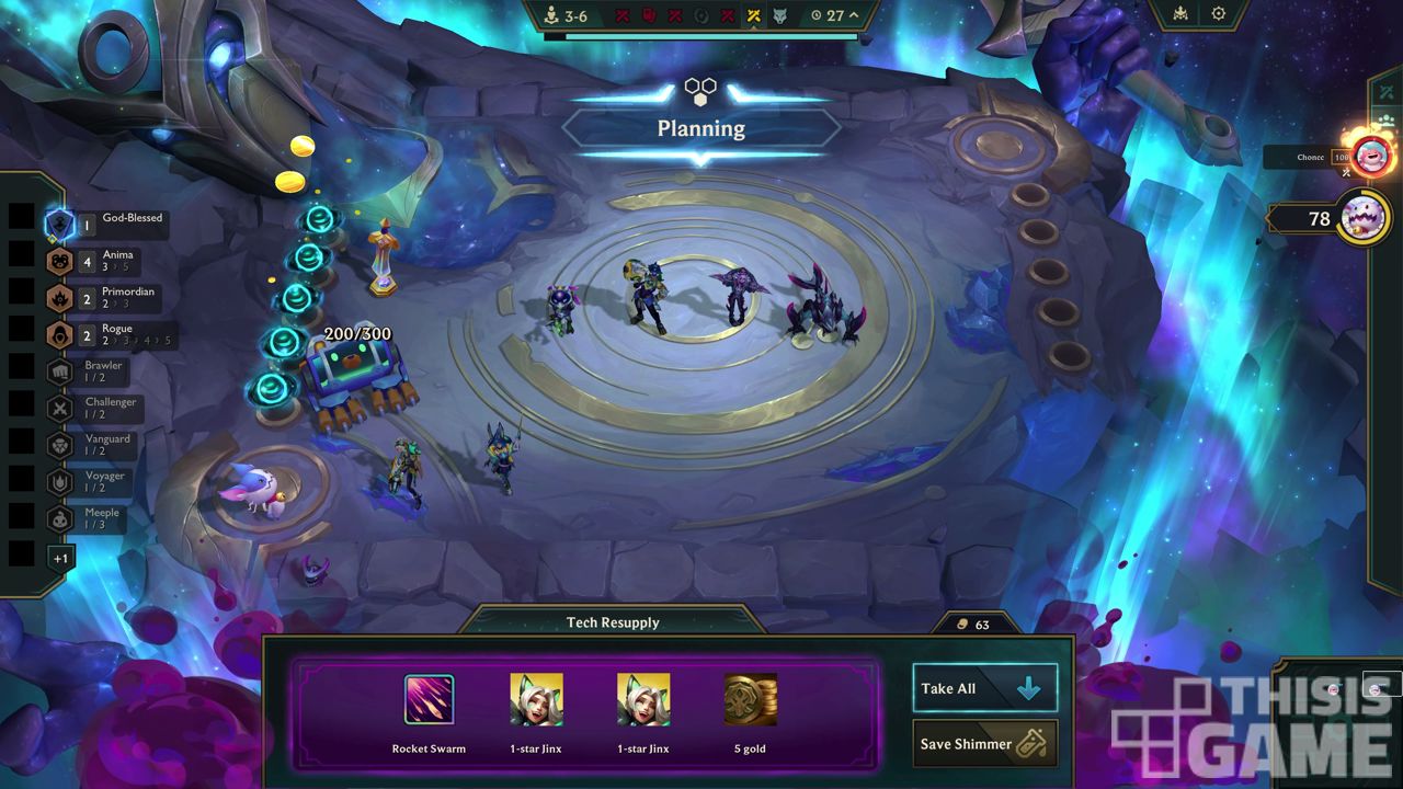 A. 필립 래민: 상황에 따라 다르다. 펭구는 공동 선택에 있는 챔피언들과 매칭되는 다양한 유닛들을 제공한다. 예를 들어 스테이지 4에서 최하위 순위라면 두 개의 5코스트나 4코스트 중에서 선택할 수 있는 축복을 받을 수 있다. 반면 초반인 스테이지 2에서 순위가 낮다면 두 개의 2성 1코스트 유닛을 얻게 되는 등 단계별로 차등화된 보상이 주어진다.