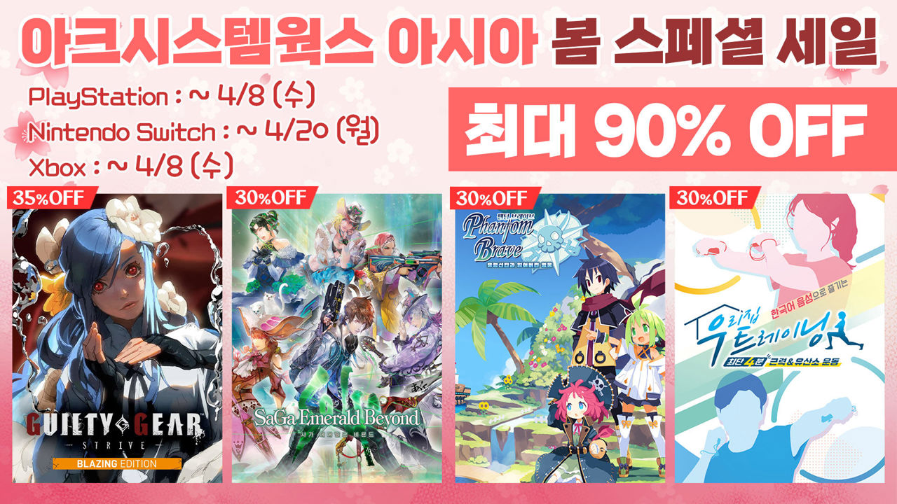 아크시스템웍스 아시아는 PlayStation™Store와 My Nintendo Store, Microsoft Store에서 2026 봄맞이 특별 세일이 진행된다고 발표하며, <길티기어 -스트라이브- 블레이징 에디션>을 비롯하여 다양한 PlayStation®4, PlayStation®5, Nintendo Switch™, Xbox One, Xbox Series X|S 다운로드 타이틀의 세일 정보를 공개했다.