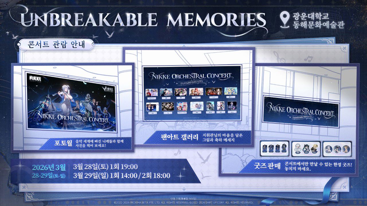 레벨 인피니트는 시프트업이 개발하고 자사가 서비스하는 승리로 향하는 소녀들의 건슈팅 RPG <승리의여신:니케>의 제2회 오케스트라 콘서트 'Unbreakable Memories'를 오는 28일부터 양일간 서울 광운대학교 동해문화예술관에서 개최한다고 금일 밝혔다.