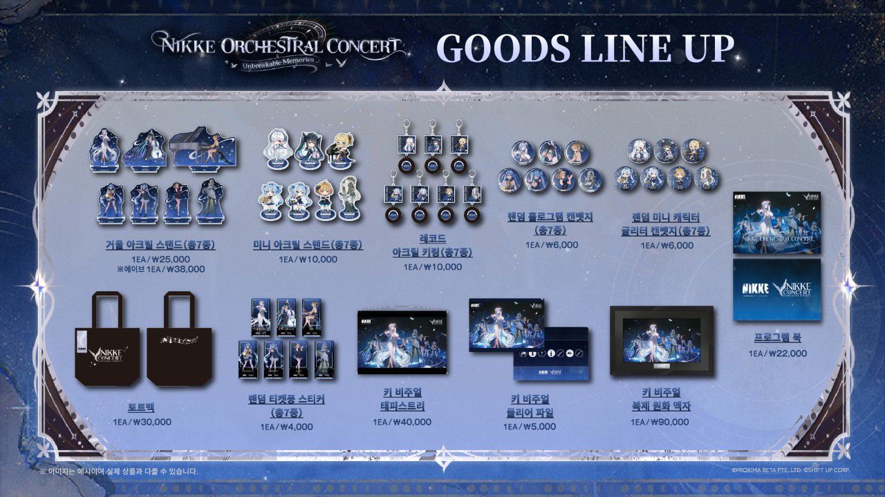 아울러 <승리의여신:니케>는 오케스트라 콘서트를 기념해 ▲거울 아크릴 스탠드 7종 ▲레코드 아크릴 키링 7종 ▲랜덤 미니 캐릭터 글리터 캔뱃지 7종 ▲키 비주얼 태피스트리 등 한정판 오리지널 굿즈 11개 품목도 선보인다.