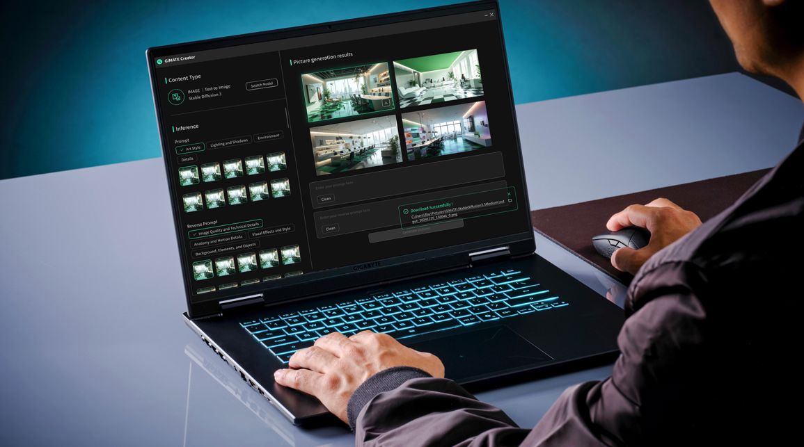 AI 환경에 최적화된 기능도 눈길을 끈다. Copilot 전용 키를 통해 AI 도우미를 빠르게 호출할 수 있으며, 기가바이트의 독자 AI 에이전트 GiMATE는 음성 명령 기반 'Press and Speak' 기능을 통해 다양한 시스템 제어를 지원한다.