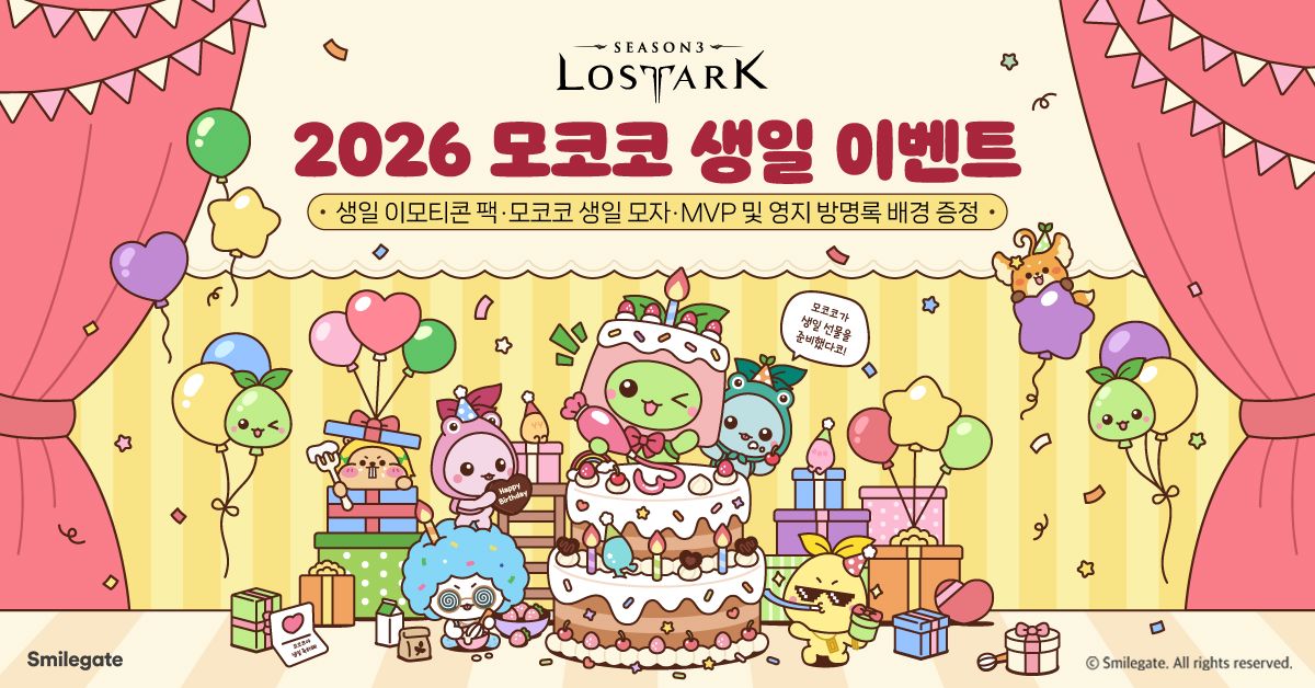 - <로스트아크> 인기 마스코트 '모코코'의 생일을 기념해 다양한 아이템 증정하는 케이크 만들기 이벤트 개최