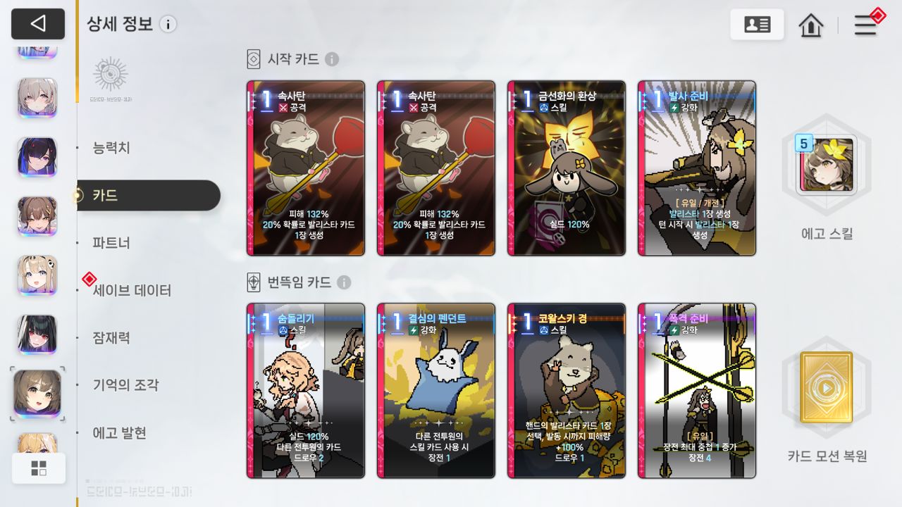 하지만 <카오스 제로 나이트메어>의 만우절은 단순하게 PV만 공개하지 않고, 실제 인게임에서도 카드 이미지를 교체해서 눈길을 끈다. 모든 캐릭터들의 카드 수백종이 저런 '저퀄리티' 카드 이미지로 바뀐 것. 하지만 '저퀄리티' 라고는 해도 커뮤니티나 캐릭터 관련 각종 '밈'들이 제대로 반영되어 깨알 같은 재미를 준다.