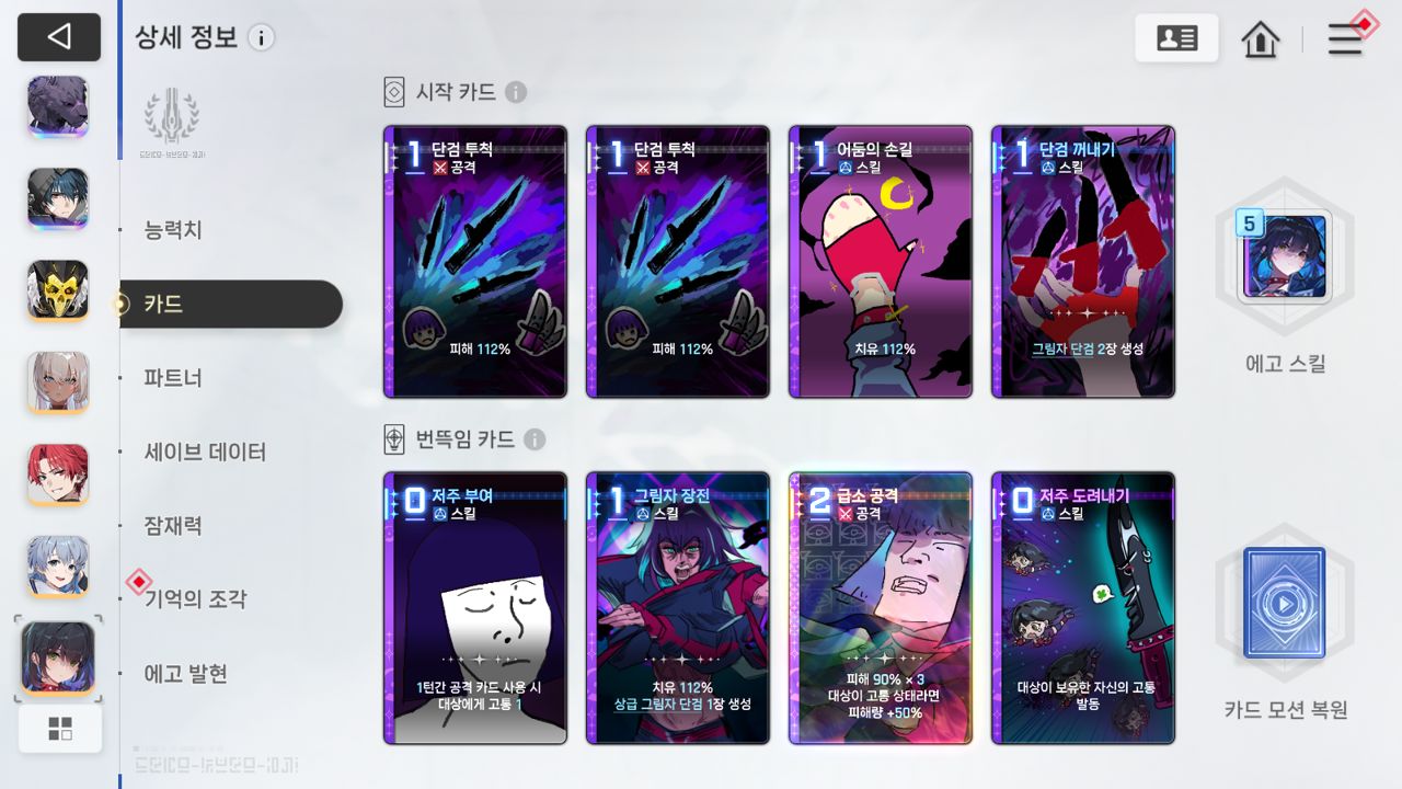 실제 인게임에도 반영된 <카오스 제로 나이트메어>의 '저퀄리티' 카드 이미지들. '야인시대' 밈부터, 같은 회사의 동명이인 캐릭터(베로니카)가 등장한다는 등. 깨알같은 재미를 선사한다.