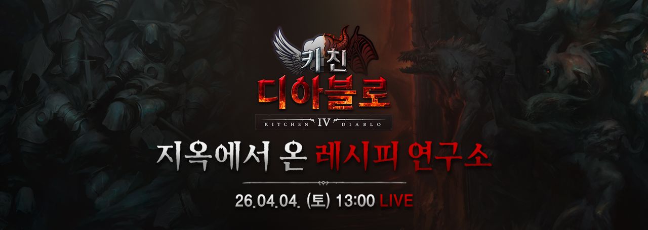 4월 4일 토요일 오후 1시부터 네이버 치지직에서 진행되는 라이브스트림에서는 승우아빠와 마법소년 김셰프(마소킴), 맛수령, 은수저, 잇모어, 쿠코, 한신희 총 7명의 요리 크리에이터가 디아블로 세계관을 주제로 한 테마 요리 개발에 나선다. 시청자들이 최종 메뉴의 이름 선정 등 제작 과정에 직접 참여할 수 있는 소통 중심의 콘텐츠로 진행될 예정이다.