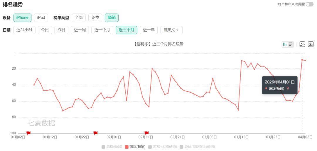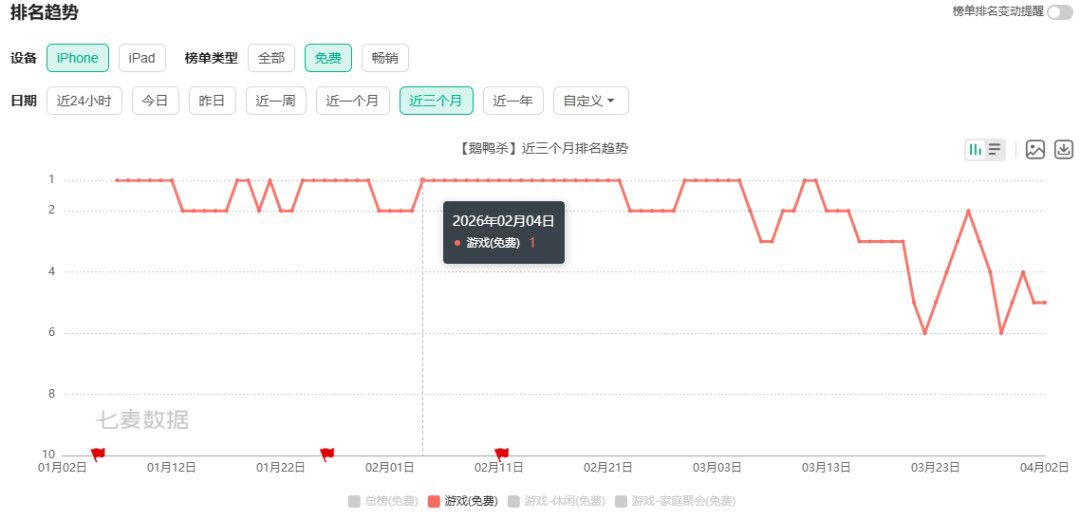 '신규 캐릭터 + 한정 스킨 + 플랫폼 컬래버레이션'의 연속 공세는 즉각적인 효과를 냈다. 치마이 데이터에 따르면 단 일주일간의 업데이트만으로 <구스구스 덕>의 iOS 추정 주간 수익은 800만 위안(약 17억 원)에 달했으며, 출시 이래 처음으로 iOS 매출순위 톱10에 진입했다.