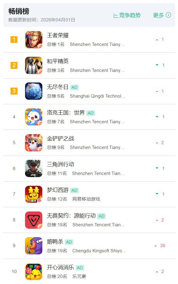 오픈베타 첫날에만 신규 유저 500만 명을 돌파했고, 6일 만에 1,000만 명, 누적 신규 유저는 3,000만 명을 빠르게 넘어섰다. 출시 후 두 달 동안 게임은 iOS 게임 무료순위 1위 자리를 거의 독차지했으며, 2월 한 달에만 20일을 정상에서 보냈다. 확실한 성과로 2026년 연초 최대 화제작의 자리를 공고히 한 것이다.