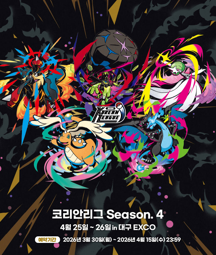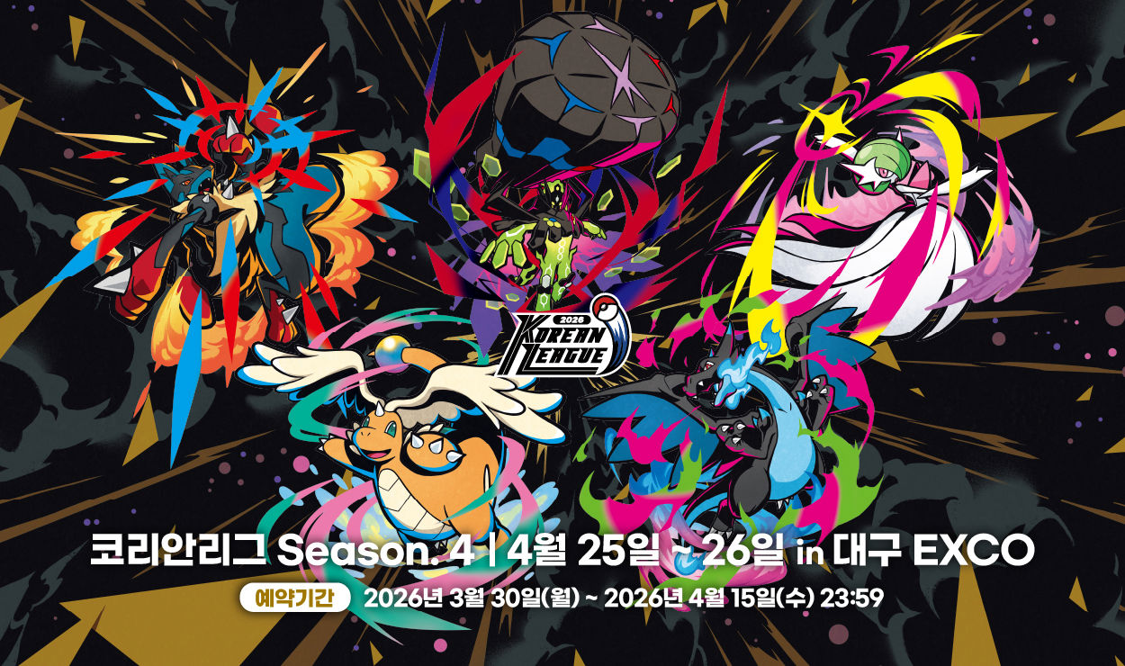 포켓몬코리아는 포켓몬 카드 게임 '2026 코리안리그 시즌4'를 오는 25일부터 26일까지 대구 EXCO 서관 전시장 1A홀에서 개최한다고 6일 밝혔다.