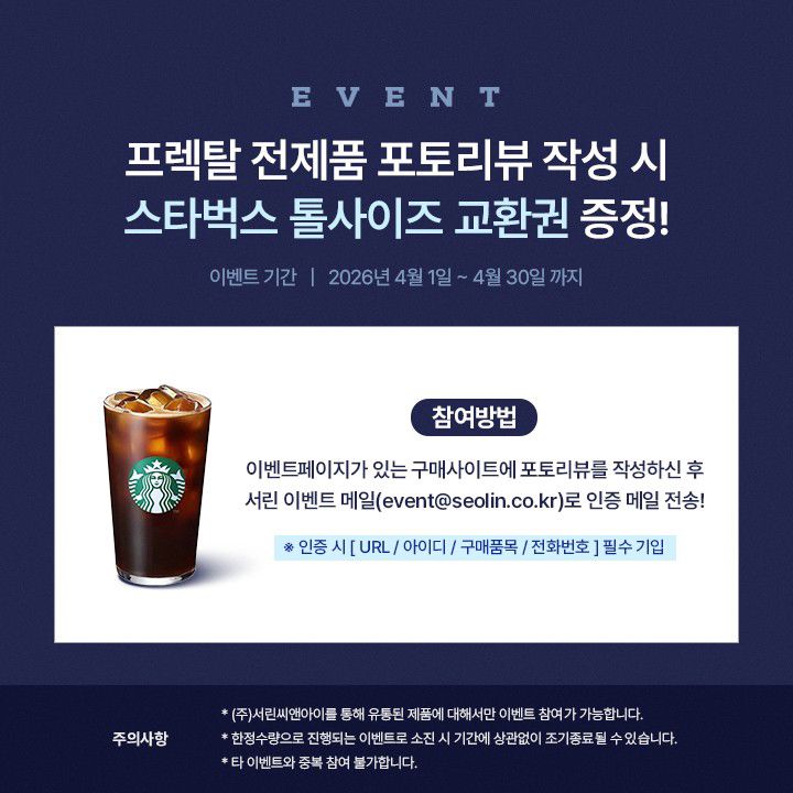 프렉탈디자인 전 제품 대상 포토 리뷰 작성 시 스타벅스 음료 교환권 증정