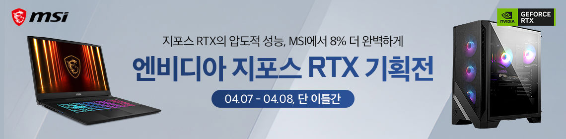 MSI는 4월 7일 화요일부터 4월 8일 수요일까지 단 이틀간, 엔비디아 지포스 RTX 50 그래픽카드를 탑재한 MSI 데스크탑 및 노트북 라인업을 대상으로 특별 기획전을 진행한다.