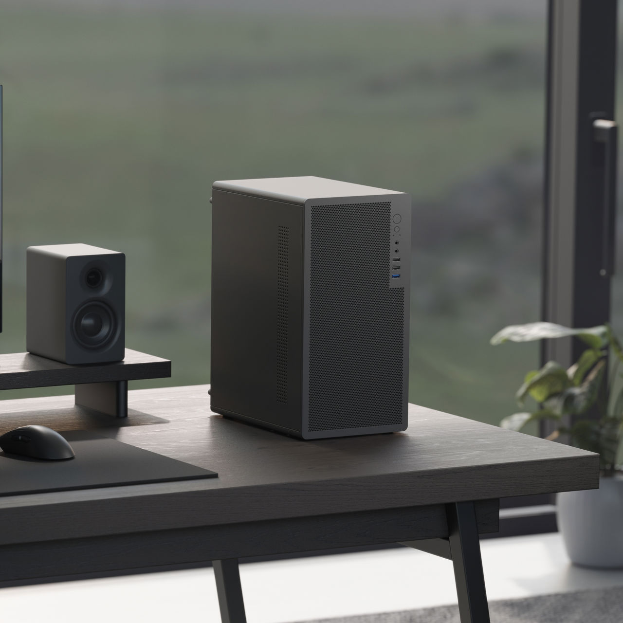 <도트(DOT)>의 가장 큰 매력은 군더더기 없는 '심리스(Seamless)' 실루엣이다. 전면에서 측면으로 이어지는 매끄러운 라인과 소재가 주는 단단한 질감은 PC를 단순한 전자 기기가 아닌 하나의 인테리어 소품으로 격상시킨다.