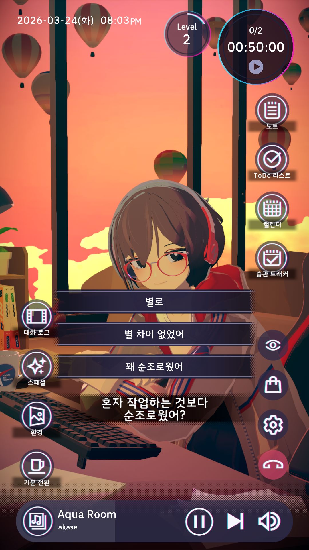 무료 구성도 비교적 넓게 잡았다. 모바일판은 기본 무료로 제공되며, 광고가 표시되는 대신 30종 이상 Lo-Fi 음악과 작업 도구를 시간 제한 없이 사용할 수 있고, 스토리는 10화까지 플레이 가능하다. 스토리 진행을 잠시 미뤄두더라도 작업용 툴 자체는 계속 활용할 수 있는 구조라, 체험판보다는 실사용형 무료 버전에 가깝다.