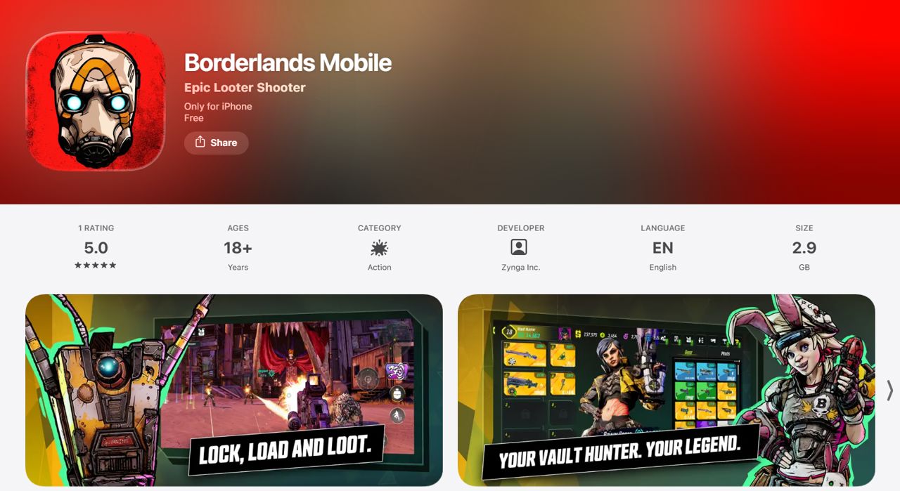 <보더랜드 모바일>은 현지 시각 4월 9일 미국 애플 앱스토어에 출시됐다. 앱스토어에는 개발·유통 모두 테이크투 인터랙티브 산하 게임사 징가로 표기돼 있다. 현재 미국 iOS에서만 이용 가능하며 안드로이드 버전은 공개되지 않았다.