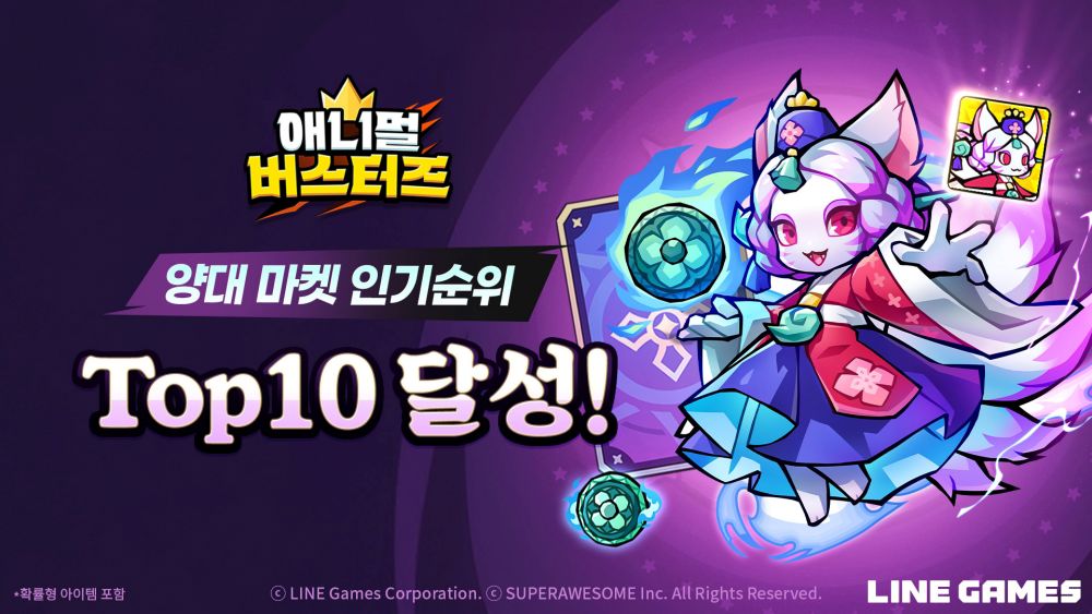 라인게임즈는 개발 관계사 슈퍼어썸이 개발하고 자사가 서비스하는 모바일 캐주얼 방치형 RPG <애니멀 버스터즈>가 출시 초반 양대 마켓 인기 순위권에 진입했다고 10일 밝혔다.