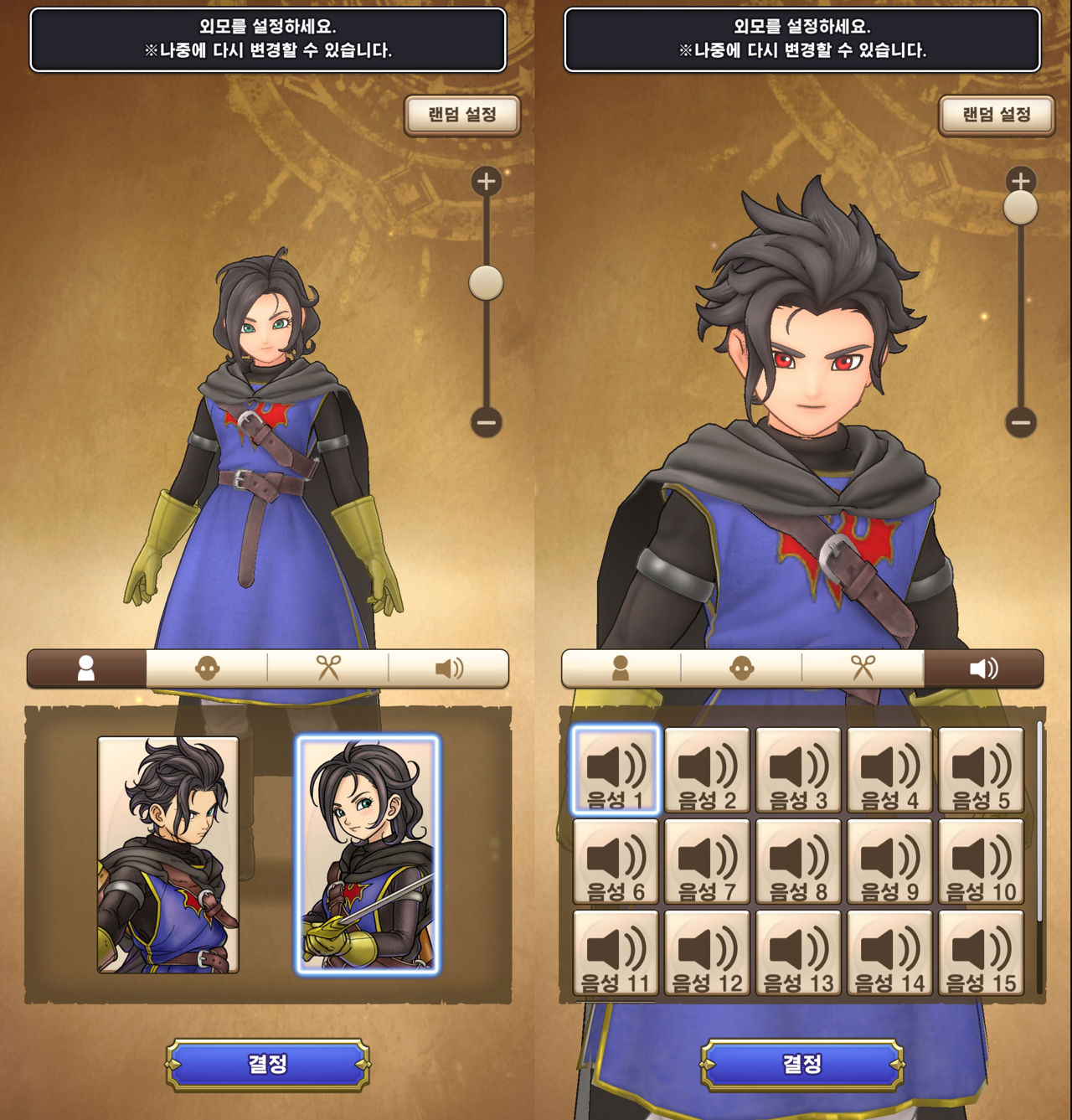 ▲ 메인 플레이어블 캐릭터의 외모와 음성을 디테일하게 정하고 시작한다. '메인'이라고 말하는 것에서 눈치채셨을 텐데, 게임 진행 과정에서 플레이 가능한 동료도 늘어나는 구조다.