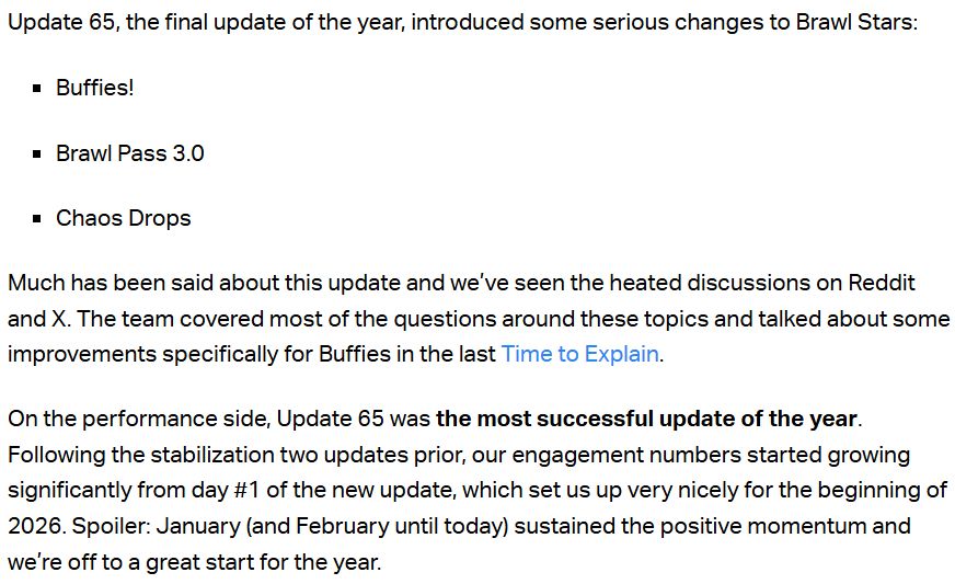 ▶ 12월 대규모 업데이트가 2025년 가장 성공적인 업데이트였다고 언급한 프랑크 케이엔부르그. (출처: 슈퍼셀 블로그)