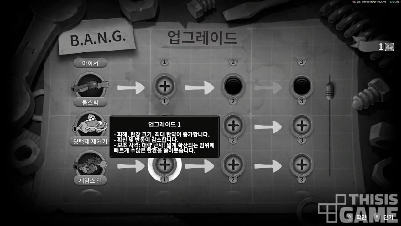 ▶ 업그레이드하면 보조 사격을 쓸 수 있는 무기도 여러 개 있다.