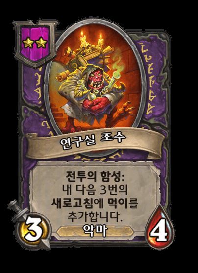 먼저 새로운 키워드 '먹이'을 선보인다. 악마를 위한 키워드인 '먹이'를 사용하면 먹이 하수인들이 개인 하수인 목록에 추가되며, 새로고침해 먹이가 나오면 굶주린 아군 악마가 먹이를 잡아먹어 그 능력치를 얻고, 빈칸이 다시 차게 된다.