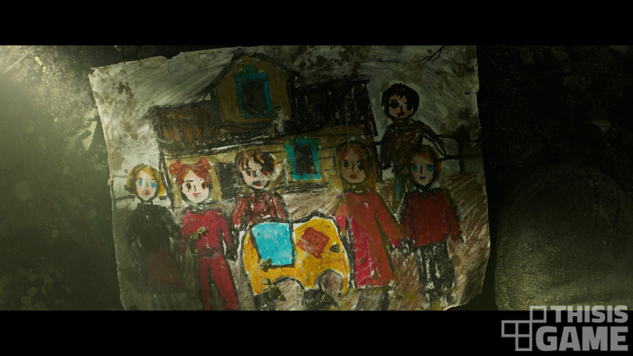 ▲ 이번 트레일러에서는, 마치 영화 <인셉션>처럼 환상과 현실 사이를 오가는 연출이 계속 반복되는 가운데, 주인공의 손에 유일하게 유형의 존재로 쥐어진 사물이 '총'과 '아이들이 그려진 그림'뿐이라는 것으로 맥락을 암시하고 있다.