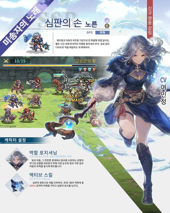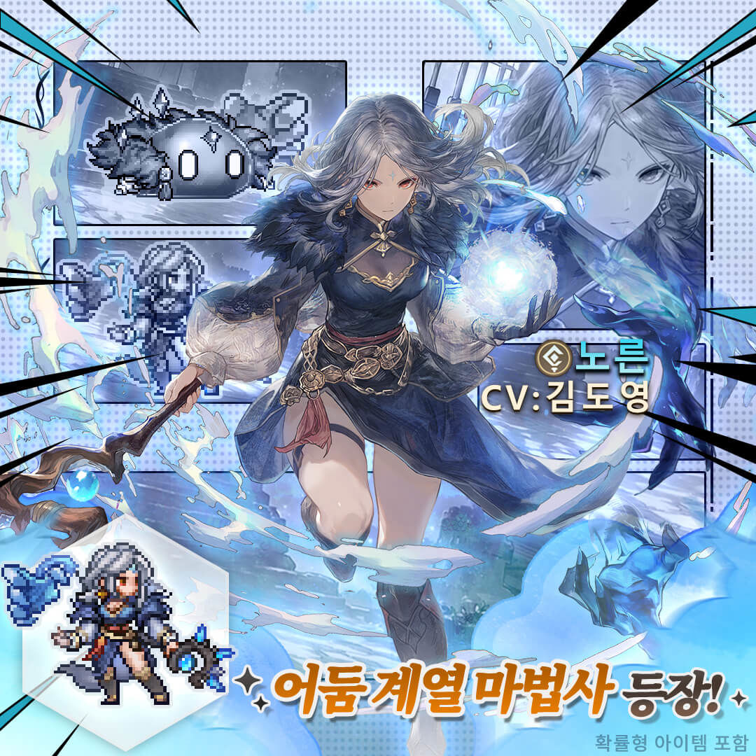 유저들은 이번 업데이트를 기념해 진행되는 한정 미션 및 로그인 이벤트를 통해 신규 SSR 마법사 영웅 노른을 무료로 영입할 수 있으며, 영웅을 일정 단계 이상 승격시킬 때 차가운 심판자의 모습에서 벗어나 신비롭고 우아한 자태로 휴식을 취하는 매력적인 한정 코스튬 '울드의 낮 베일'도 추가로 획득할 수 있다.