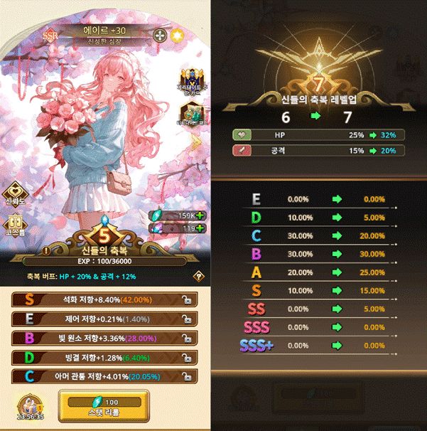 특히 '프리즈마이트'를 활용한 슬롯 잠금 기능으로 원하는 핵심 능력치를 안전하게 유지할 수 있다. 또한 지속적인 스탯 리롤을 통해 호하 축복 레벨을 상승시키면, 모든 영웅에게 적용되는 추가 능력치 보너스가 제공되며 상위 옵션 등장 확률도 함께 증가한다.