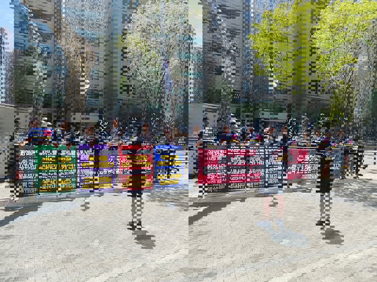 ▶ 사옥 앞에서 시위중인 유니티 코리아 노조.