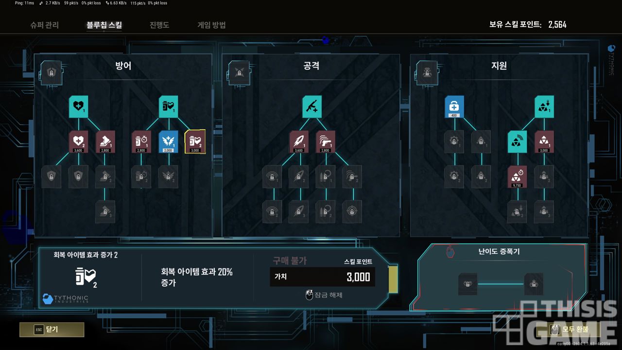 ▶ '블루칩' 업그레이드는 패시브 스킬들이다. 하나하나 인게임 성능 체감이 확실하다.