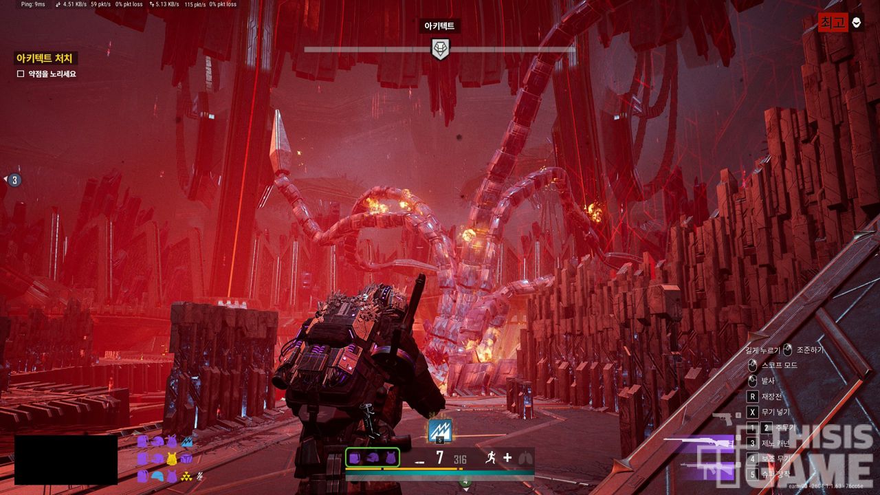 <제노포인트>에서 가장 인상적인 것은 공들여 제작된 리소스들이다. 무기는 본게임에서도 보던 것들이지만, 외계 세력에 의해 파괴되고 변형된 맵이나, 적 캐릭터, 스킬, 장비 등은 새롭다. 위협 단계 3을 클리어하면 도전할 수 있는 ‘모선’ 맵의 보스도 꽤 힘을 준 모습이다.