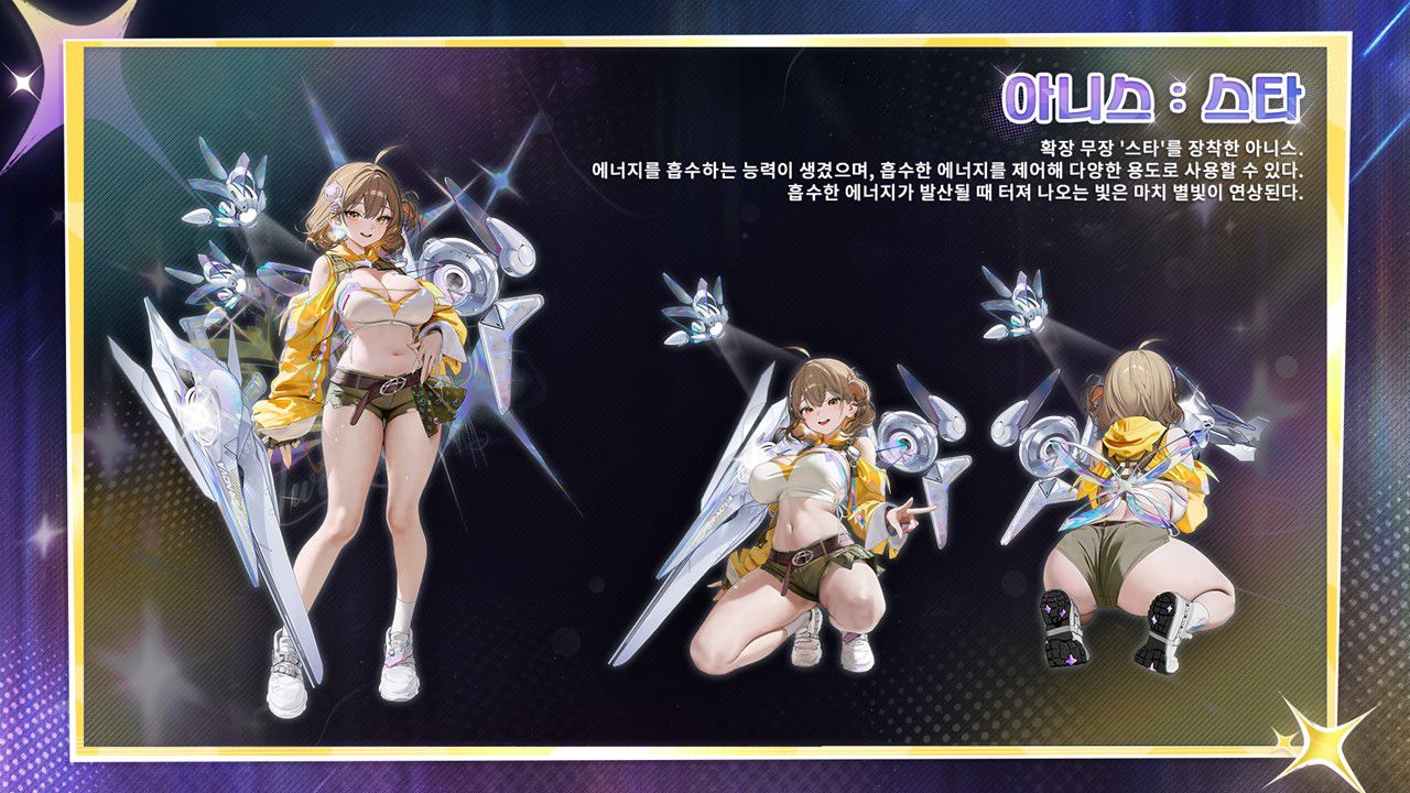 이들 두 명은 '오버스펙' 캐릭터로 등장하며, 아니스: 스타가 이벤트 1주차에, 네온: 비전아이가 2주차에 픽업을 진행할 것으로 예상된다. 특히 '아니스: 스타'의 경우에는 캐릭터 픽업 시작과 동시에 '코스튬 픽' 한정 코스튬도 판매 예정이라 눈길을 끈다.