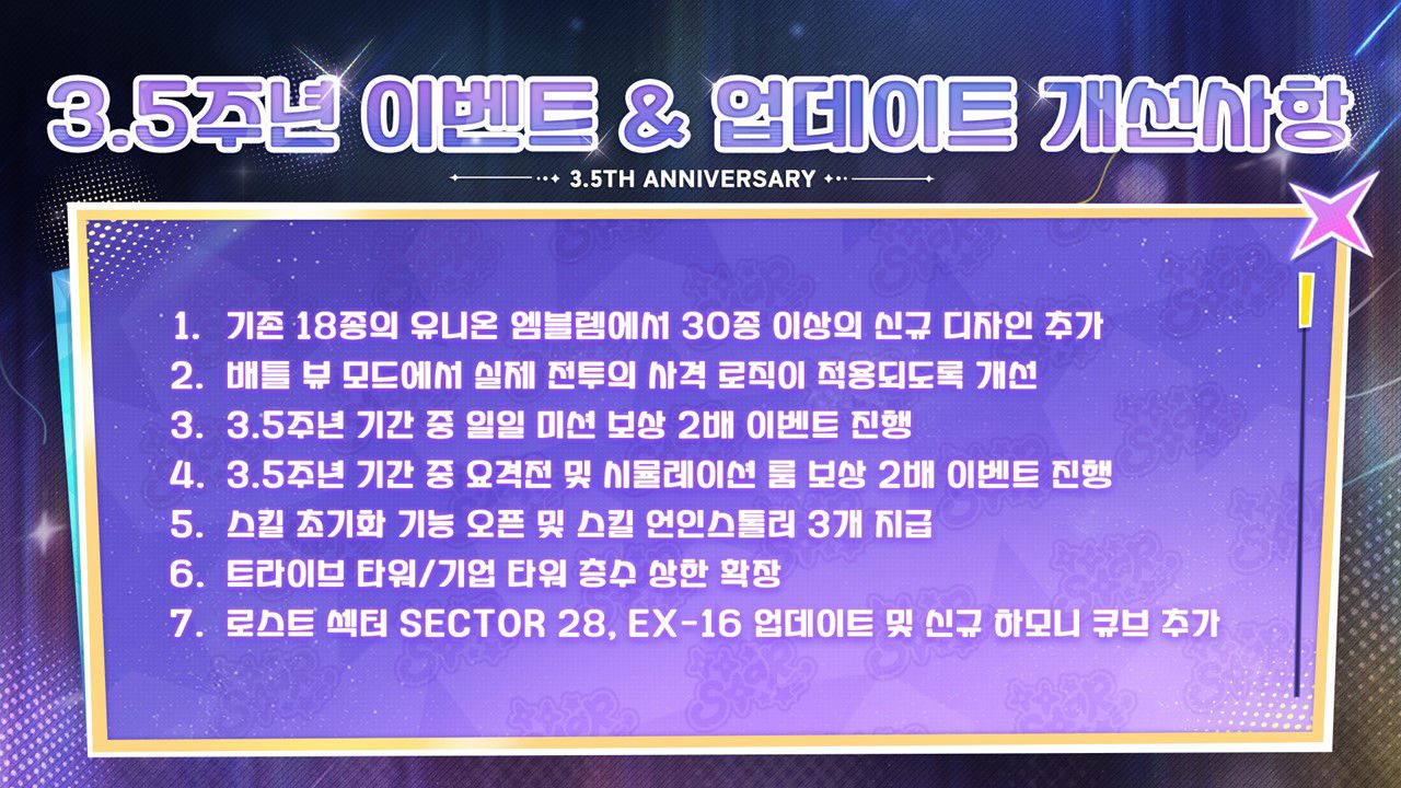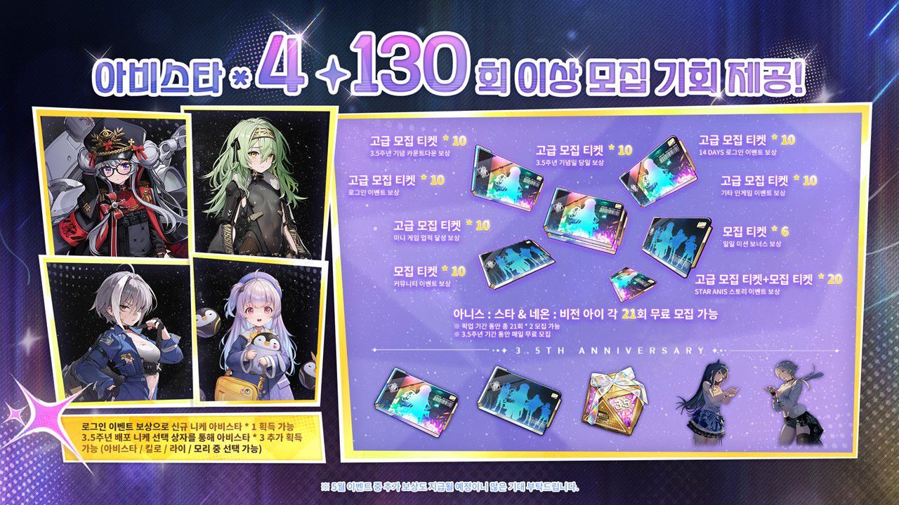 3.5주년 이벤트 스토리인 '별이여 영원히 빛나라'는 과거 시점의 아니스가 T.T스타로 데뷔한 이야기를 다룰 예정이다. '아이돌'이 핵심 주제가 되는 이벤트 스토리인 만큼 이벤트가 펼쳐지는 3D 맵도 '아이돌 스테이지' 형태로 꾸며지며, 인게임 각종 콘텐츠에서도 아이돌 음악과 애니메이션 등이 적극 사용될 예정이다.