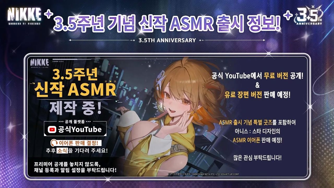 또한 <승리의 여신: 니케>는 예정중인 '오프라인 이벤트' 및 각종 관련 상품 판매에 대한 계획도 발표했다. 굿즈 판매를 위한 팝업 스토어어를 개최하며, 오는 7월에는 '밴드 라이브'도 진행한다. '아니스'가 주인공이 된 ASMR도 판매되며, 이번 주년 이벤트와 연계된 여러 이벤트도 전개한다.
