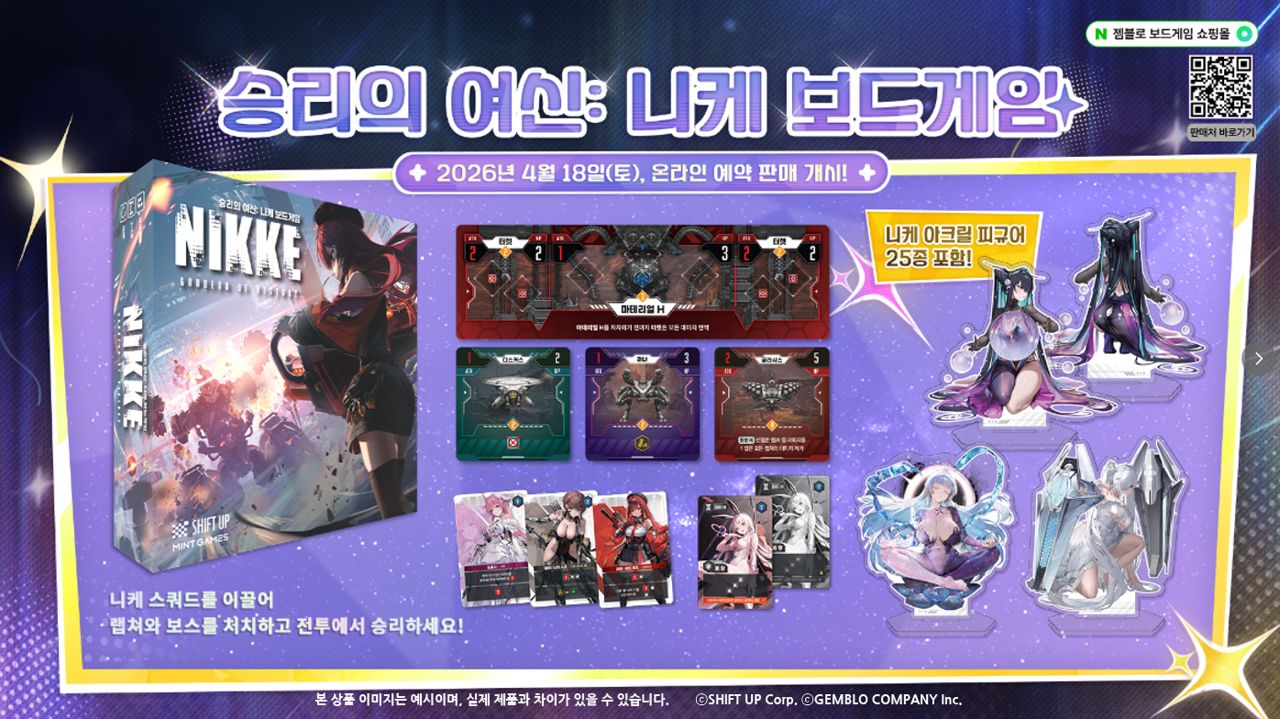 젬블로컴퍼니의 오준원 대표는 “글로벌 메가 히트작인 <승리의 여신: 니케>의 매력을 오프라인 보드게임 시스템에 완벽하게 녹여내기 위해 심혈을 기울였다”며, “원작 팬들에게는 25종의 아크릴 피규어를 통한 수집의 즐거움을, 보드게임 팬들에게는 깊이 있는 전략 전투의 재미를 선사할 것”이라고 밝혔다.