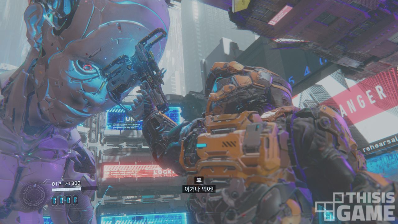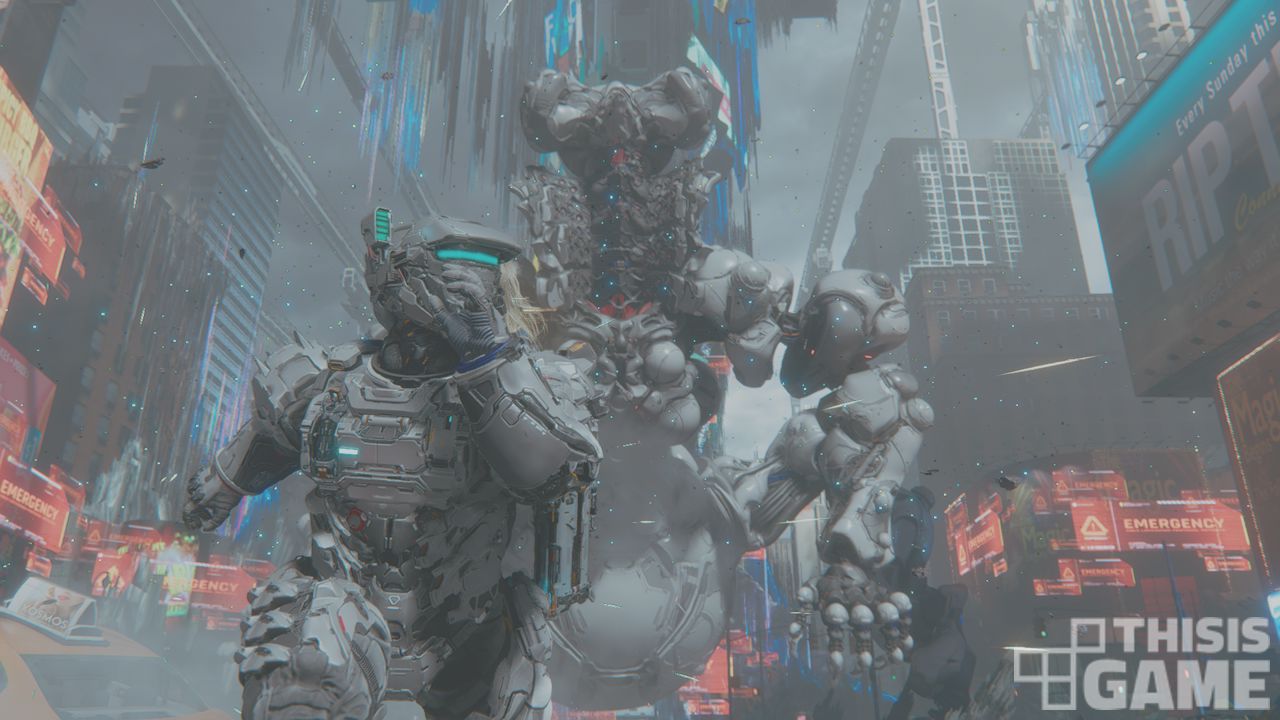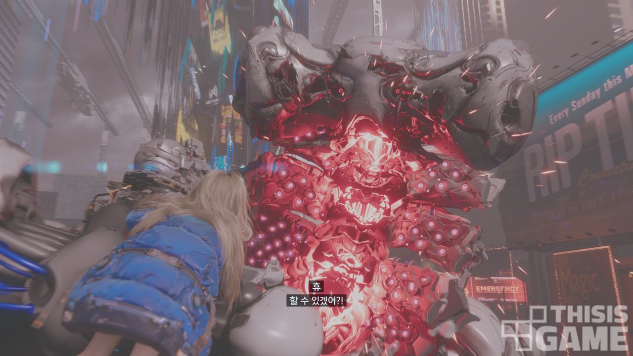 거대한 로봇에 맞서는 과정이나 액션, 해킹 플레이가 교차되는 것은 <니어 오토마타>의 재미를 더 압축적으로 옮겨놓은 듯한 인상을 준다.