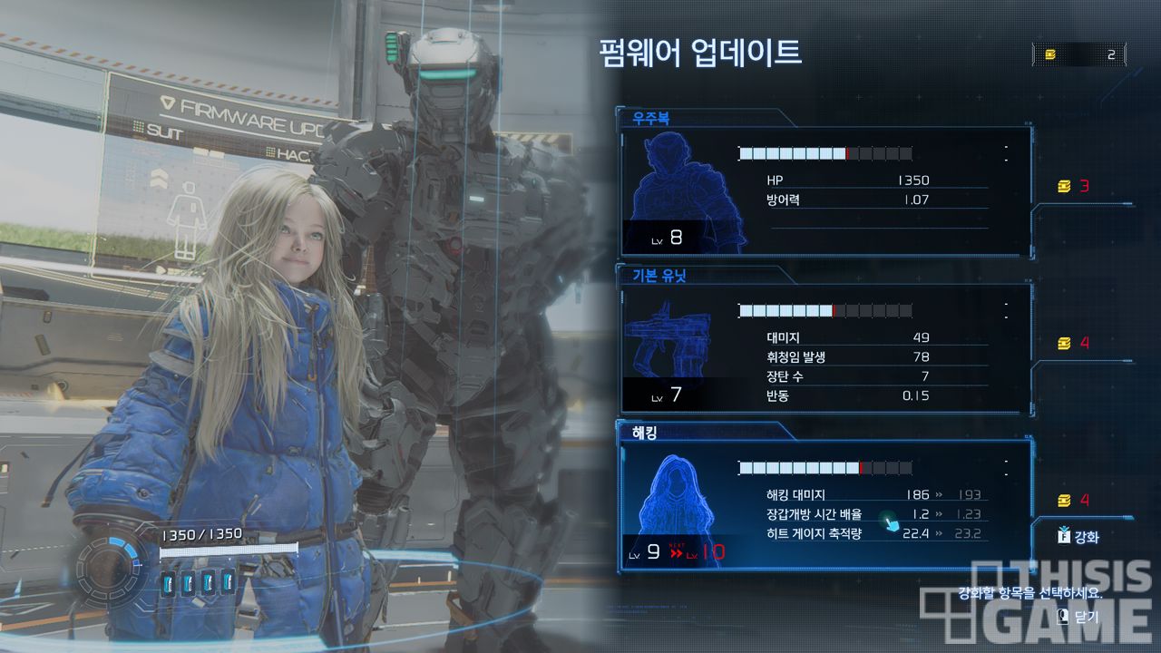 하지만 <프래그마타>에서는 상황이 많이 다르다. '휴'의 우주복과 무기도 중요한 역할을 하고 있지만, '다이애나'의 '해킹' 능력이 없으면 절대 나아갈 수 없는 공간과 위기도 많이 등장한다.