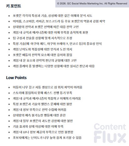 특성 기술(아쿠아 제트, 앙코르 등)의 중요성을 인식하고 전술을 지속적으로 조정하는 모습은 <포켓몬 챔피언스>가 코어 전략 팬덤에게 충분한 깊이를 제공할 수 있음을 시사합니다.