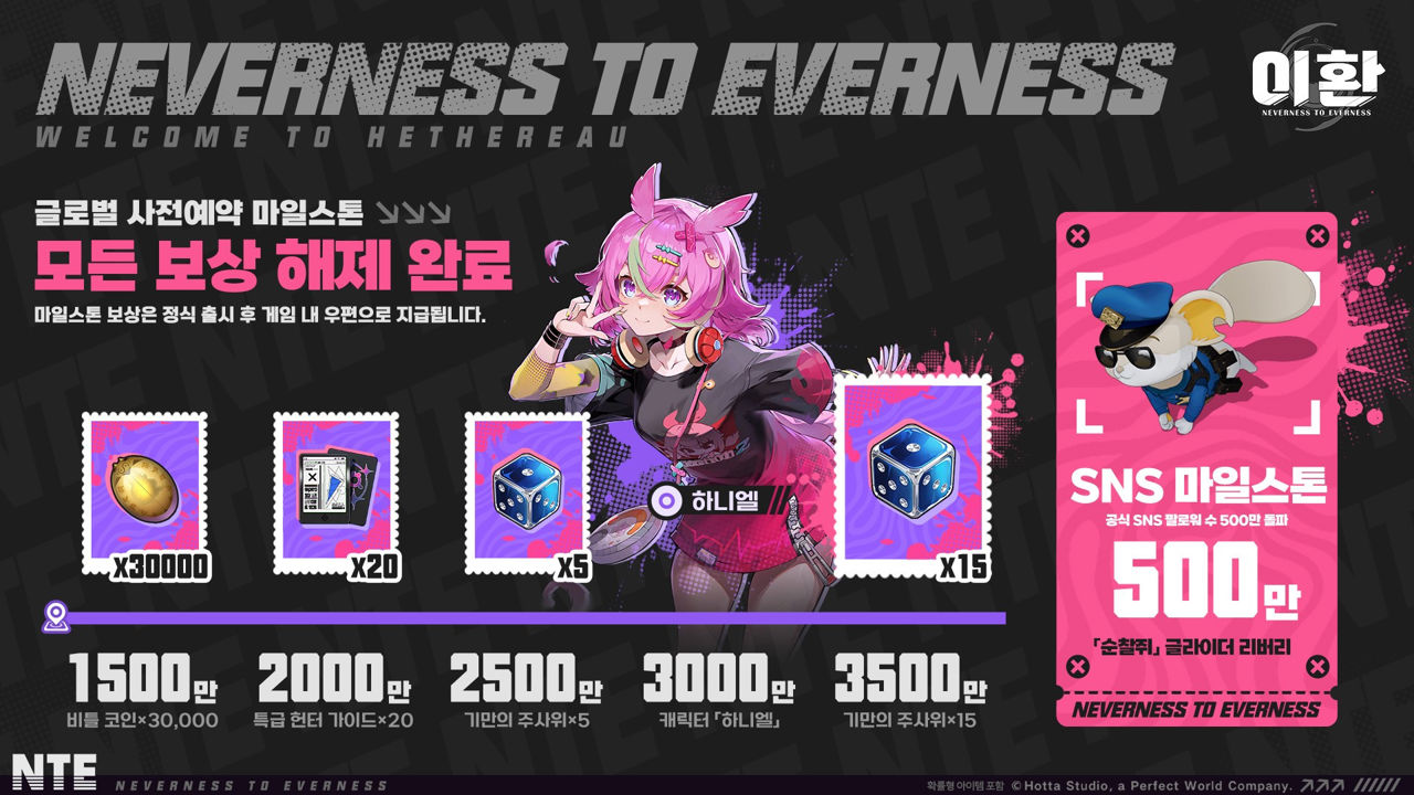 출시 당일 게임에 접속하면 글로벌 사전예약자 수 돌파 기념 보상을 받을 수 있다. 더 자세한 내용은 <이환> 공식 홈페이지와 공식 커뮤니티에서 확인할 수 있다.