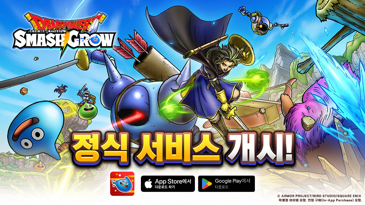 SQUARE ENIX는 <드래곤 퀘스트> 시리즈 최신작 모바일 로그라이트 RPG <드래곤 퀘스트 스매시 그로우>를 구글 플레이와 애플 앱스토어에 정식 출시했다고 21일 밝혔다.