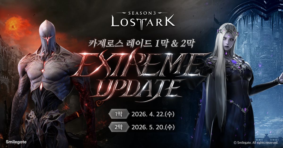 스마일게이트는 대한민국 대표 MMORPG(다중접속역할수행게임) <로스트아크>가 모험가들의 많은 사랑을 받았던 카제로스 레이드 1막과 2막에 '익스트림' 모드를 추가한다고 22일(수) 밝혔다.