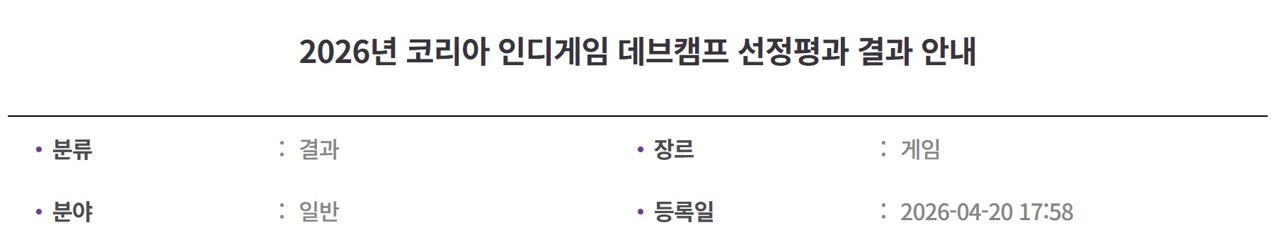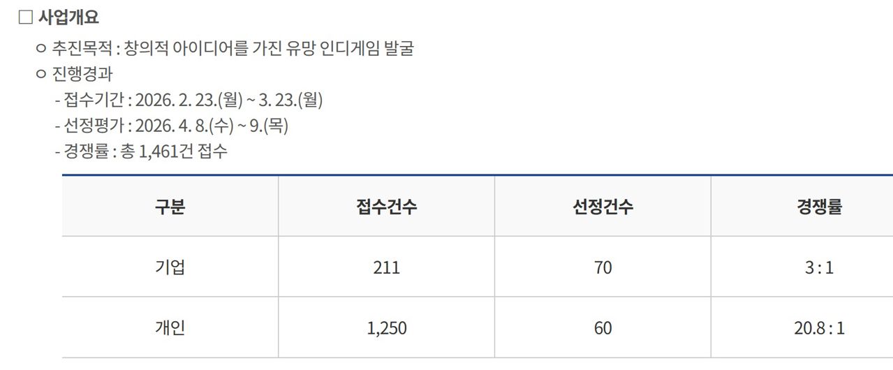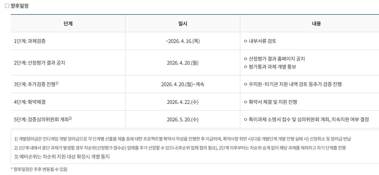 콘진원은 지난해에 기자를 만났던 당시에도, 2026년에는 '경쟁 오디션' 형태의 인디게임 지원사업을 마련해, 단계별로 더 우수한 프로젝트를 추려가며, 게임이 만들어지는 과정 전반에 걸친 지원을 할 계획이라 말했었다.