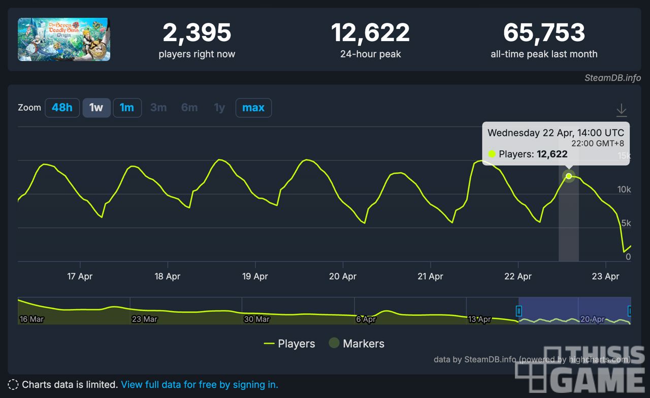 ► 지난 3월 출시 이후 스팀에서 최고 동시 접속자 1만 명 이상을 꾸준히 유지하고 있다. (이미지 출처: SteamDB)