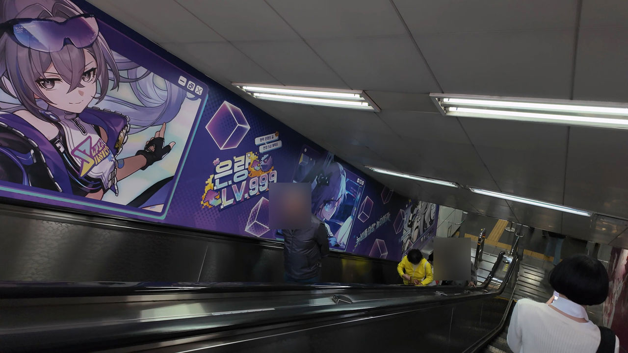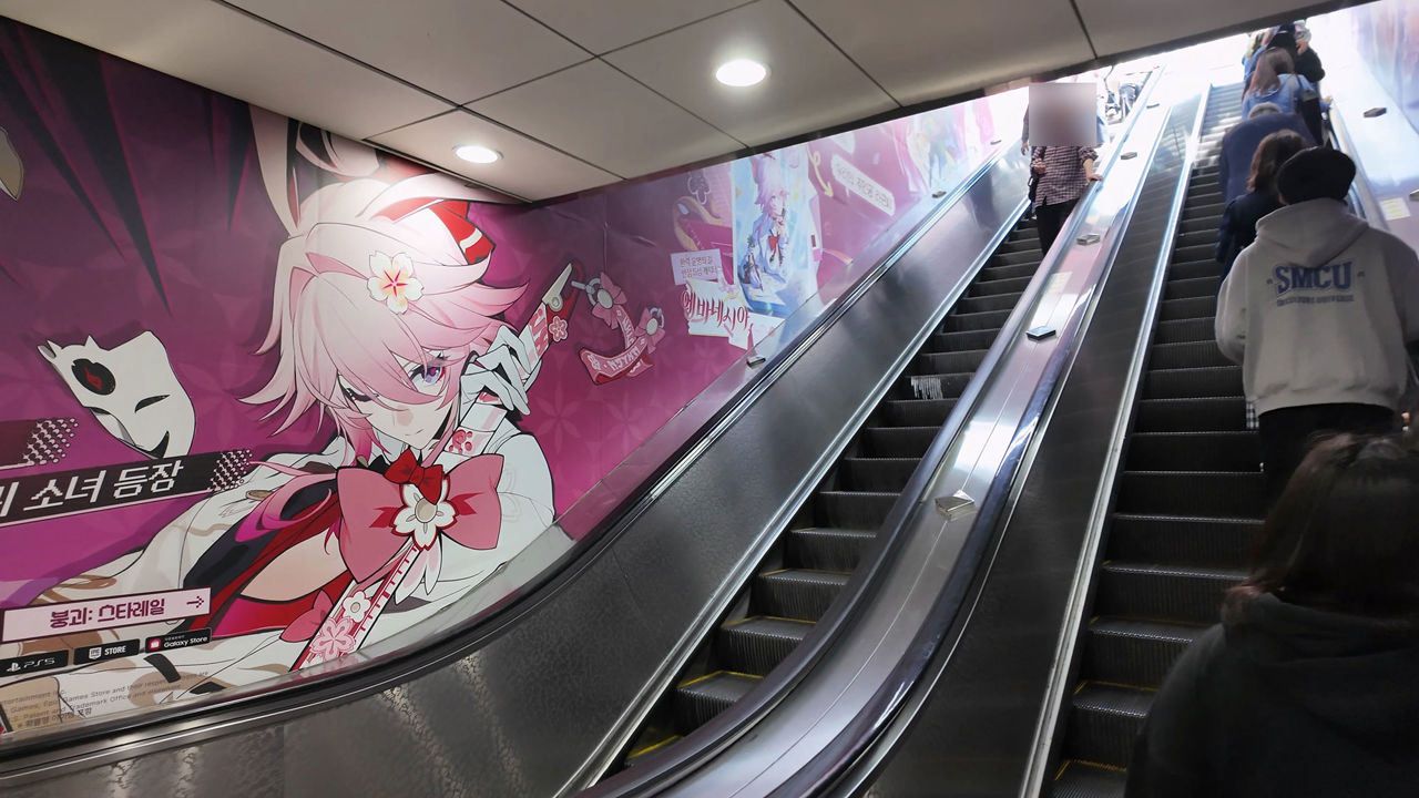 팝업스토어 개장에 맞춰, 2호선 서울 홍대입구 출입구도 <붕괴: 스타레일>의 이번 버전 4.2 업데이트를 테마로 꾸며졌다.
