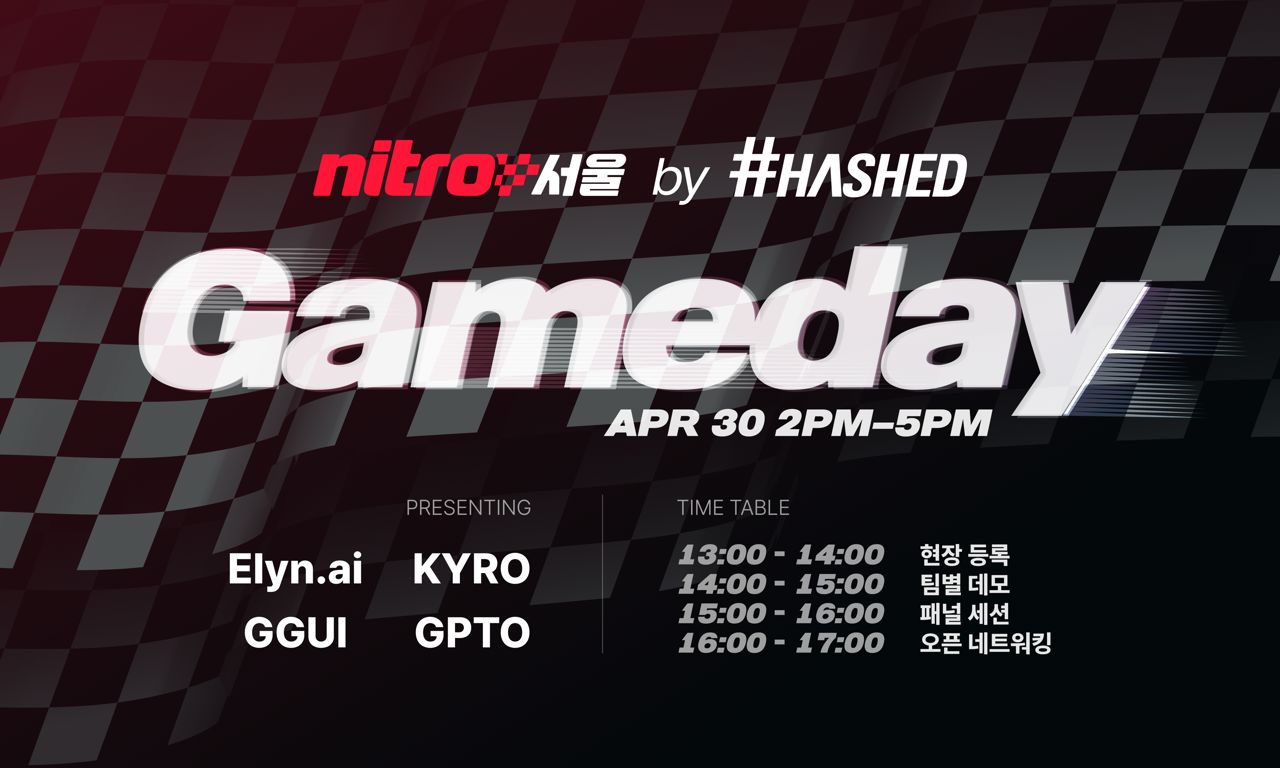 글로벌 웹3 벤처캐피털 해시드는 인공지능(AI) 네이티브 빌더 발굴 프로그램 '나이트로 바이 해시드(Nitro by Hashed)'의 첫 공식 데모데이인 '나이트로 서울 게임 데이(Nitro Seoul Game Day)'를 오는 4월 30일 개최한다고 27일 밝혔다.