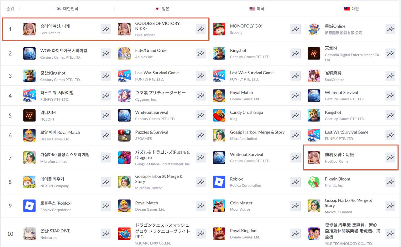 대만에서도 같은 기간 10위권을 유지하고 있으며, 북미를 포함한 글로벌 주요 지역에서도 견조한 성과를 거두고 있다.
