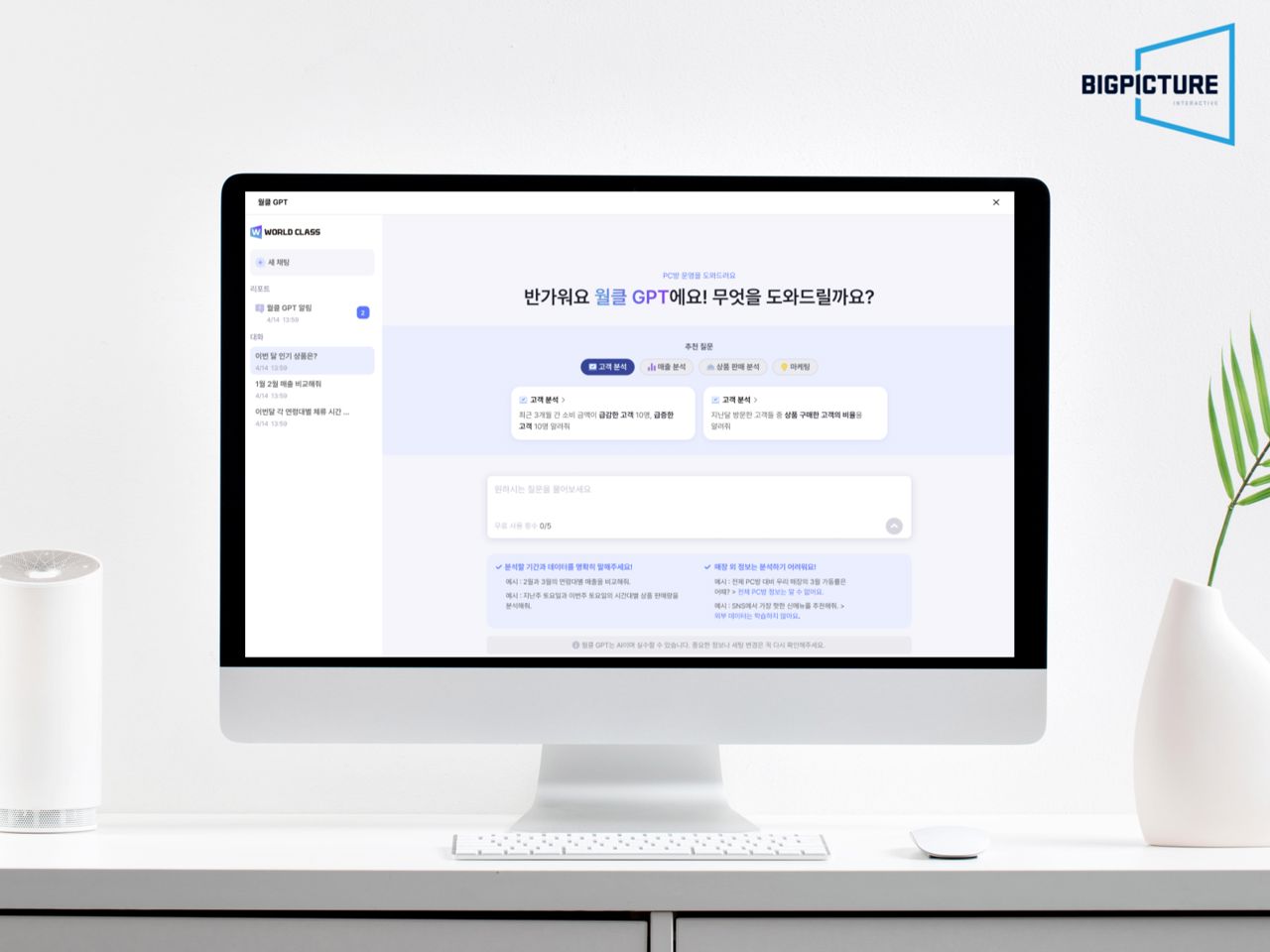 빅픽처인터렉티브는 자사 PC방 관리 프로그램 '월드클래스'(이하 월클)에 AI 운영 비서 '월클 GPT' 기능을 업데이트했다고 밝혔다.