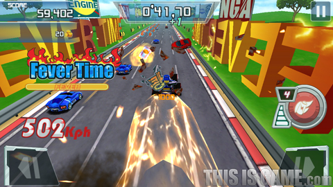 레이싱 게임에 런 게임 요소를 결합한 <가속스캔들 for Kakao>.