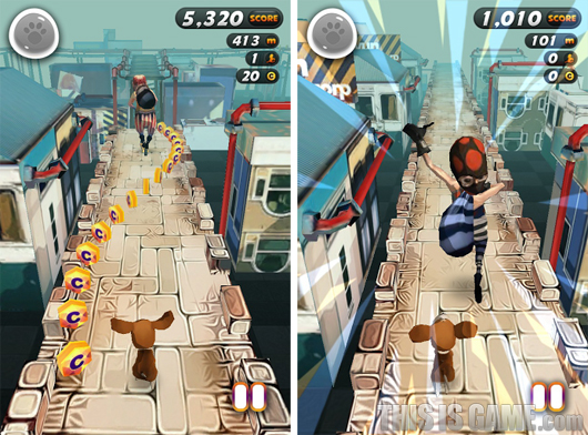 도둑을 쫓는 강아지를 소재로 한 런 게임 <러닝독 for Kakao>.