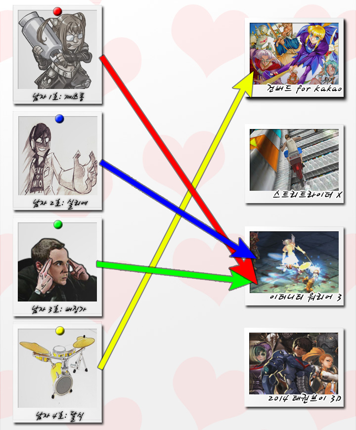 [신‘짝’게임 소개팅이란?] 매주 쏟아지는 모바일게임 중 어느 것을 골라 받아야 할지 난감하시죠? TIG 기자들이 모여서 그날 출시된 신작을 직접 플레이해본 뒤 첫인상을 모아 소개하는 코너를 만들었습니다. 소개팅에 나온 상대를 살펴보듯 신랄하고도(!) 말랑말랑하게(?) 풀어낸 코너의 이름은 바로 신‘짝’게임!