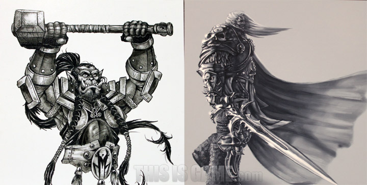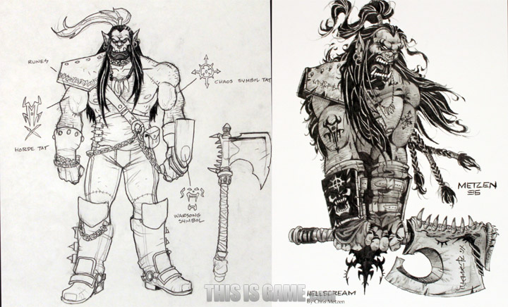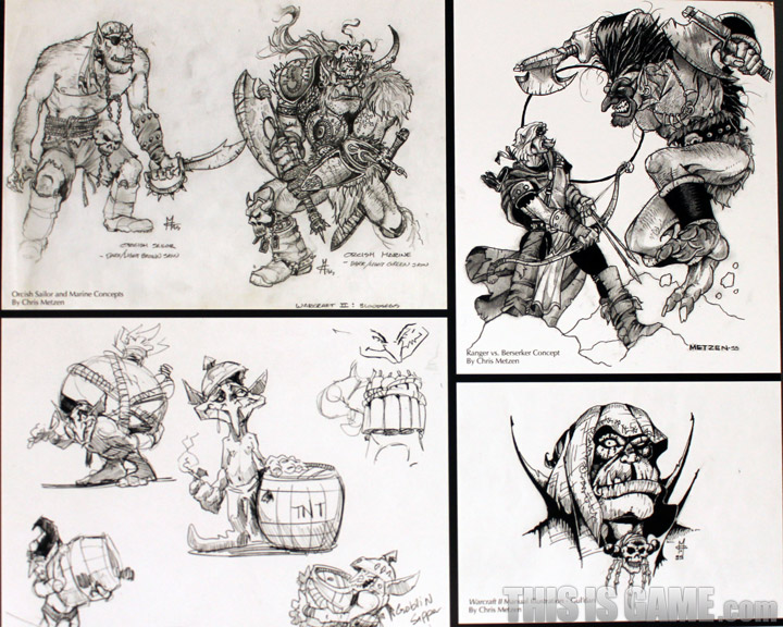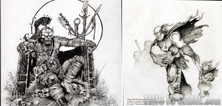 <워크래프트 2> 유닛들의 원화. <월드 오브 워크래프트> 유저들에겐 레이드 보스로 유명한 ‘초갈’도 눈에 띄네요. 자세히 보면 알겠지만 크리스 멧젠 부사장이 그린 그림이네요.